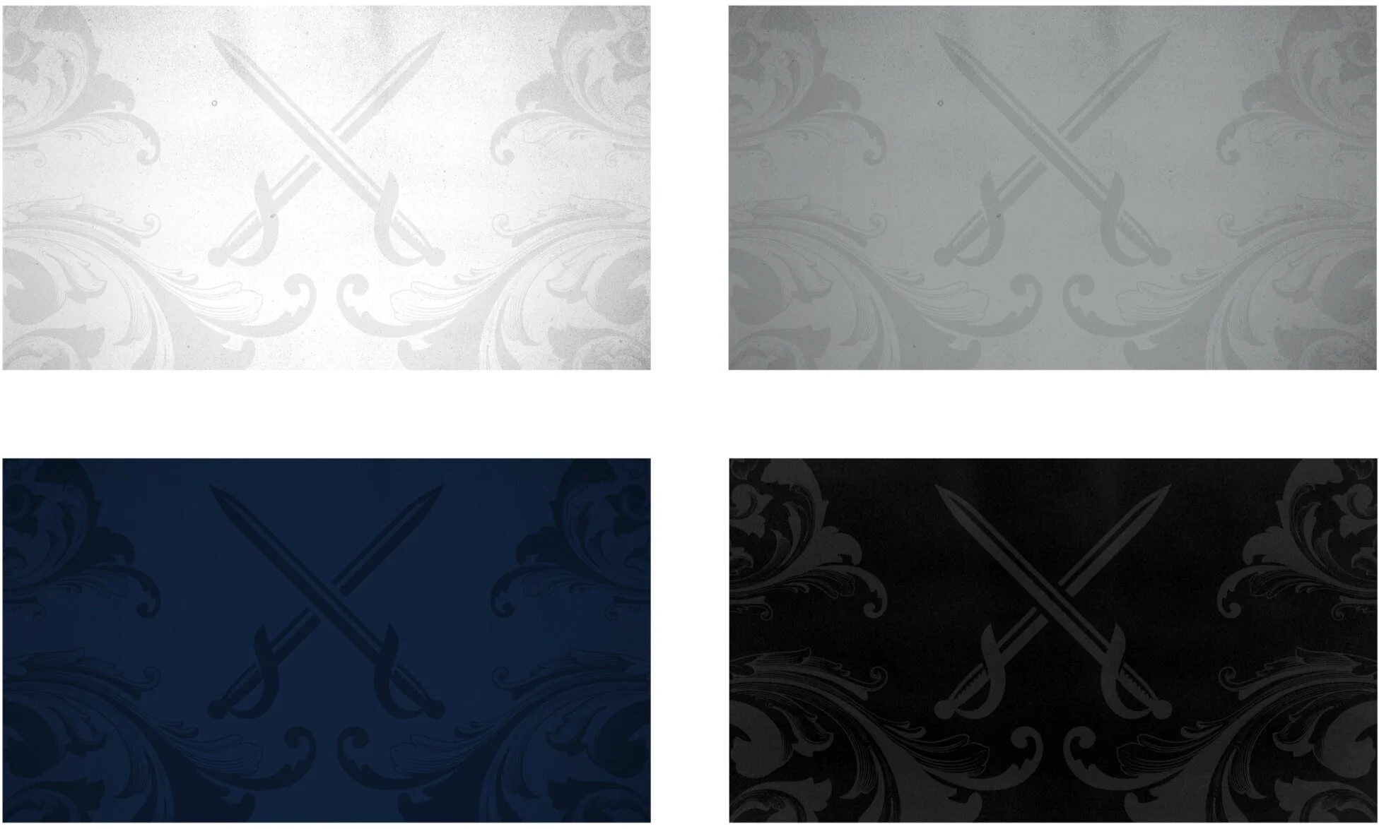 The new flourish represents a simplified version of the previous design. This new design was created with subtlety in mind, allowing it to be used as a background element that can be carried through the entire brand. With a new composition, refined flourishes, and the addition of swords, this element has become the core of the new branding.